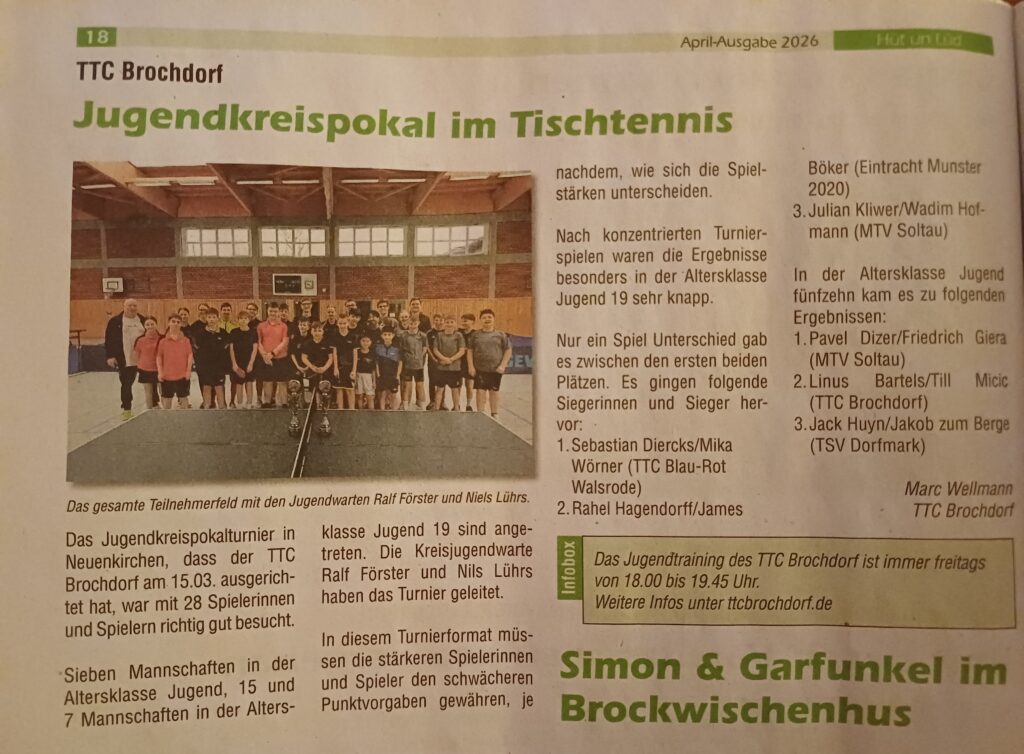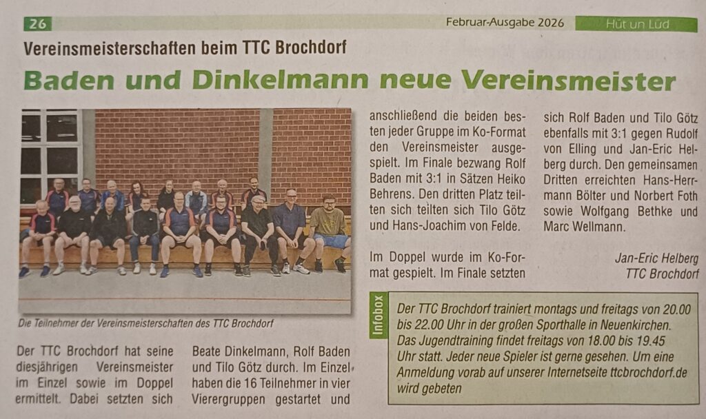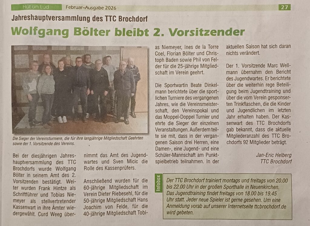 Entdecken Sie unser Archiv mit Artikeln zum TTC Brochdorf.